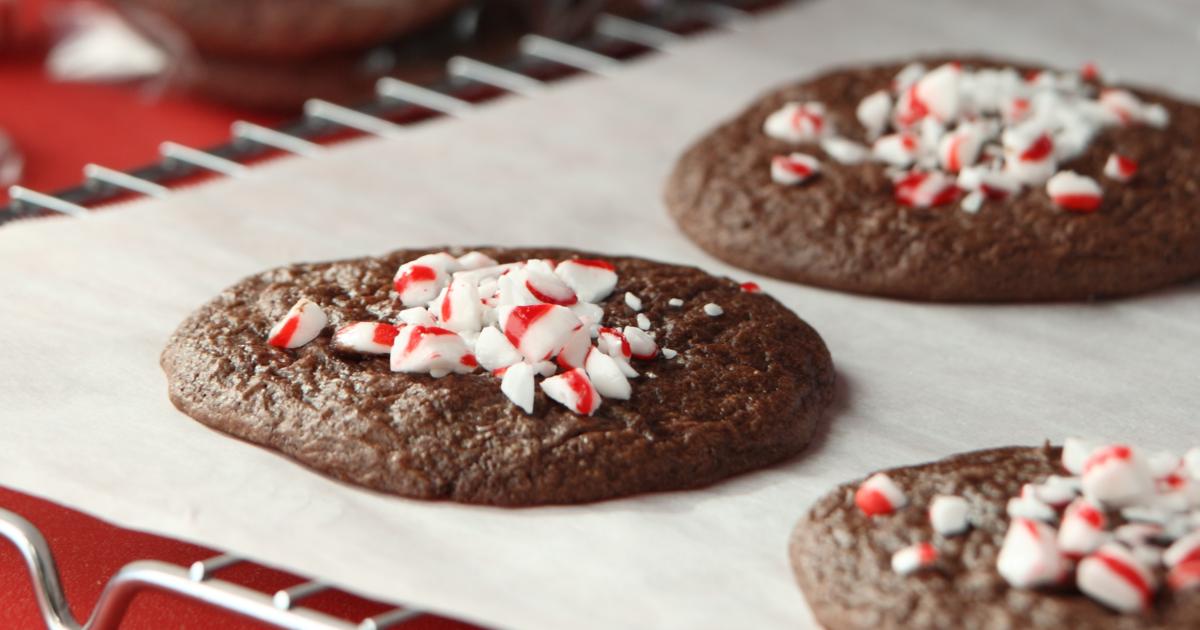 - Remove from oven; sprinkle tops with crushed mints. Let cookies cool on sheet pan for 5 min.