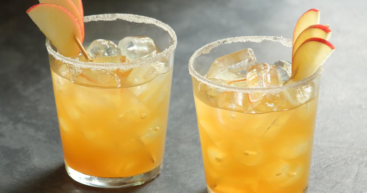 - Add cider and juice; shake to combine and chill (about 30 sec.).
