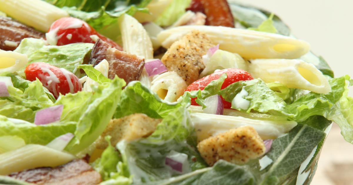 - Just before serving, carefully fold in bacon, lettuce and croutons.